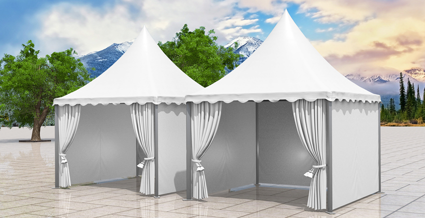 尖頂篷房有多種可供選購的配置,例如:玻璃墻體、玻璃門、地臺(tái)板、布幔內(nèi)飾等。尖頂篷房除了單獨(dú)使用外,還可以將它用排水槽連接起來組成更大的面積,形成多樣的造形,在戶外活動(dòng)應(yīng)用中更加精彩。