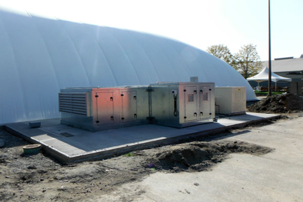 為了保證氣膜建筑全天候地工作,配備一臺(tái)功率相匹配的燃油發(fā)電機(jī)組。當(dāng)市電停電時(shí),由控制系統(tǒng)(或者人工)啟動(dòng)。