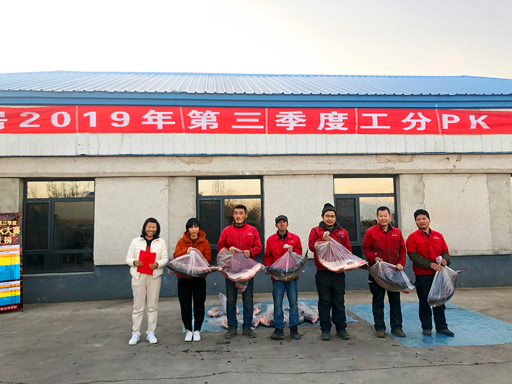 公司每季度會評選出各部門工分前三名,要么獎勵大魚、豬肉,要么送米面油,讓員工回家更有面兒,切實感到溫暖、實惠。