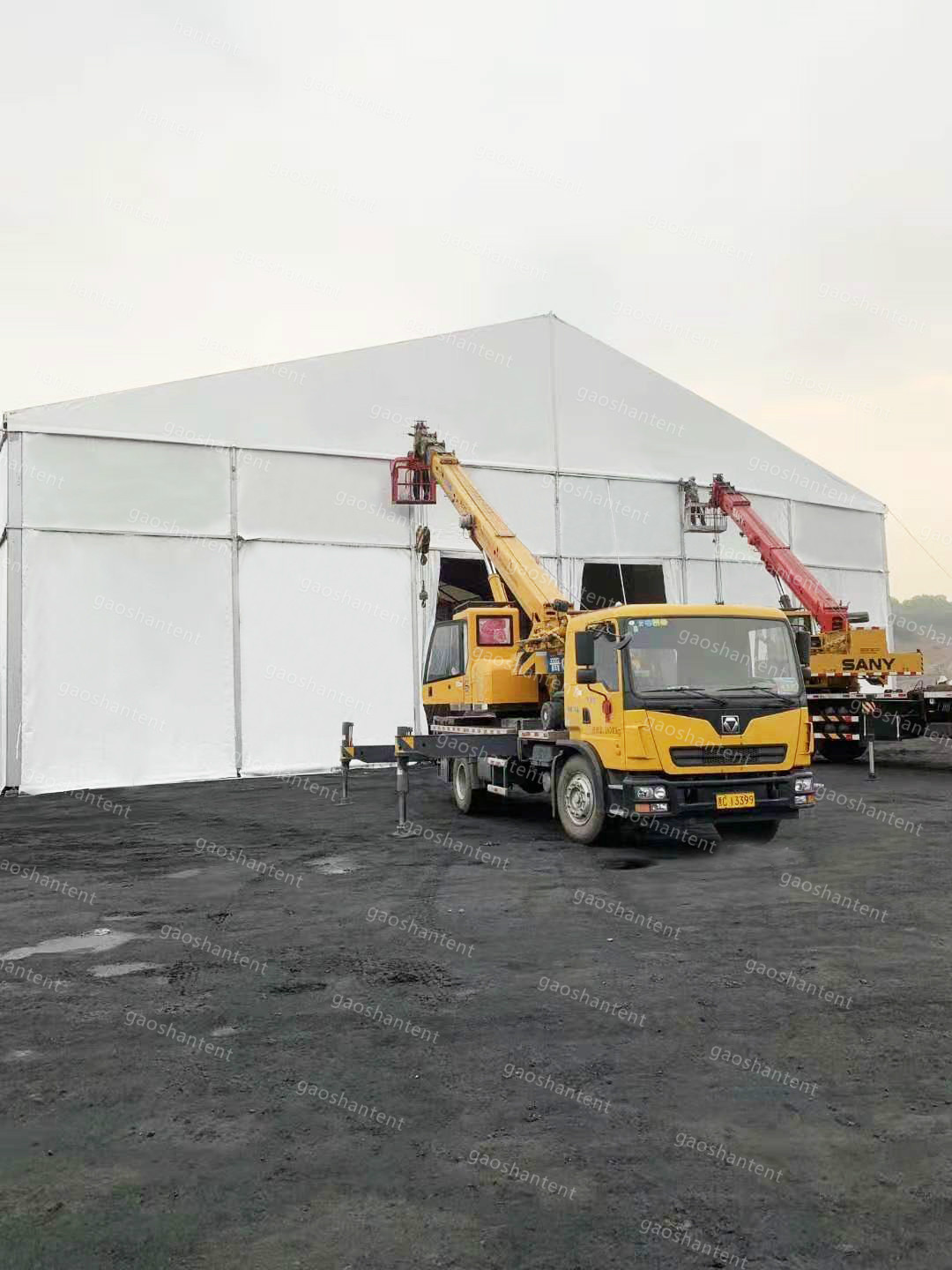 與傳統(tǒng)建筑相比,篷房本身屬于臨時(shí)建筑,無需繁復(fù)的審批手續(xù),高山利用客戶園區(qū)自由場地,建造跨度50m、頂高15m的全鋁合金倉儲(chǔ)中轉(zhuǎn)空間,隨著加工地點(diǎn)、環(huán)保要求的變化,靈活實(shí)現(xiàn)可移動(dòng),從容解決環(huán)保難題。