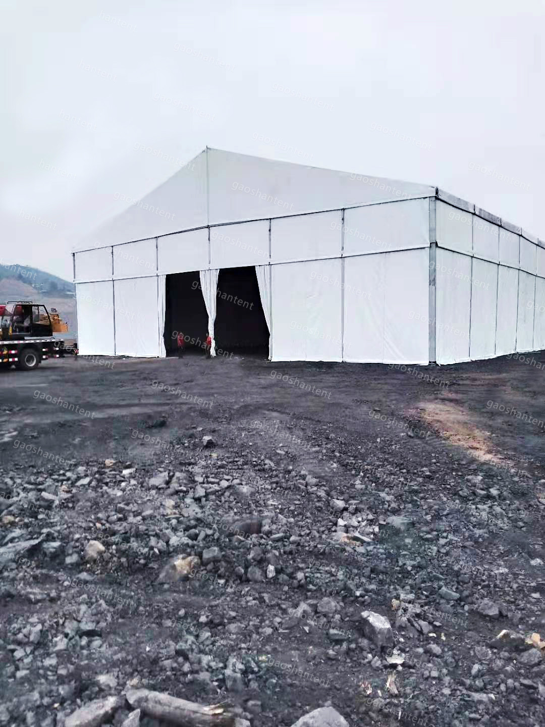 高山環(huán)保篷房以其優(yōu)越的密閉性能、施工快捷、可二次利用等特性,廣泛適用于煤炭企業(yè)開采、加工、倉儲(chǔ)等各個(gè)環(huán)節(jié),形成密閉的作業(yè)空間,避免對(duì)周邊環(huán)境產(chǎn)生二次污染。