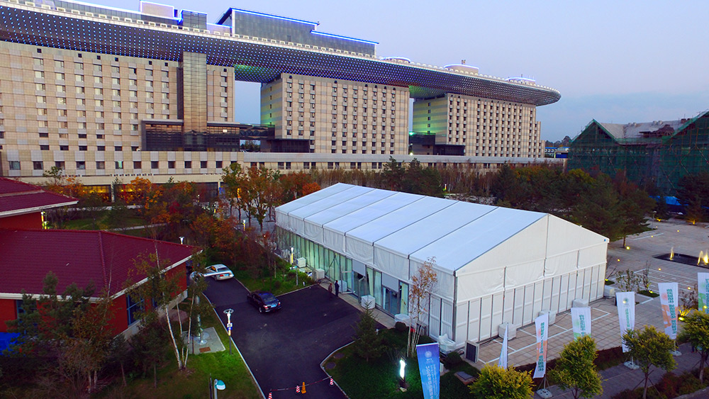 也可以采用篷房與固定建筑相結合的方式,通過使用篷房,解決現有空間不足的問題。例如篷房出入口,來賓通道,附屬廚房,化妝室等場景。