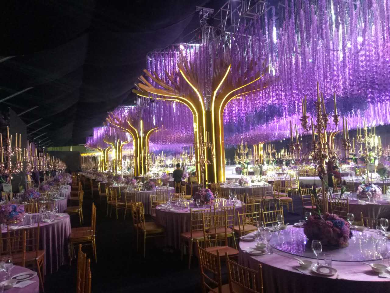 婚禮篷房,離不開更多配件的組合,例如,天花,木制底板,吊燈,玻璃墻體,ABS硬質(zhì)墻板,鋁合金玻璃門,透明篷頂和圍簾等等。婚禮篷房能抵抗大風(fēng)。具有安全性高,體積小,易運(yùn)輸,拆裝和存儲方便等特點(diǎn)。重要的一點(diǎn),它的租賃費(fèi)用是大大低于酒店的。
